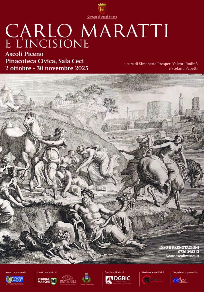 Dopo il successo della prima tappa a Camerano, città natale di Carlo Maratti, il progetto espositivo Carlo Maratti e l’incisione approda ad Ascoli Piceno, nella Pinacoteca Civica, per un nuovo capitolo delle celebrazioni dedicate al IV centenario della nascita del maestro marchigiano (1625 – 1713).